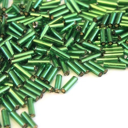 Rocailles bugle 6mm émeraude silver lined 10g
