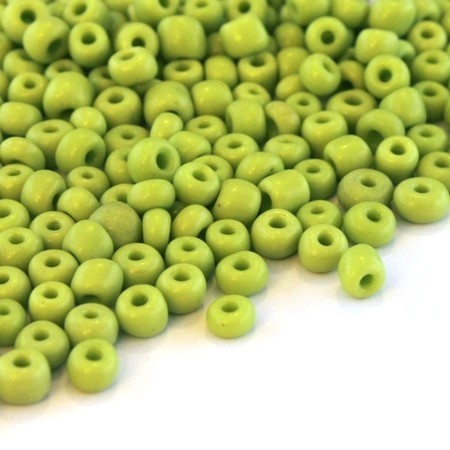 Sachet de 15g de grosses perles de rocailles couleur vert clair opaque.