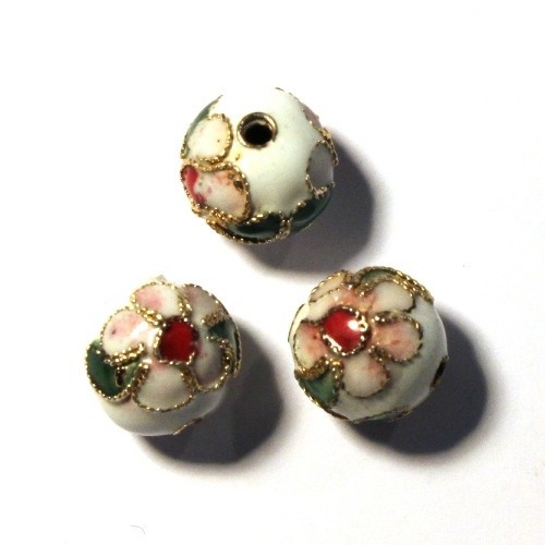 6 Perles cloisonnées rondes 10mm blanc