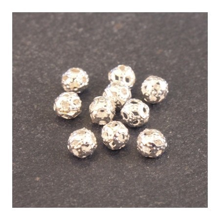 Lot de 20 petites perles filigranées rondes en métal, diamètre 4mm, couleur argenté.