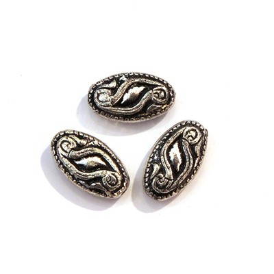 10 Perles CCB ovales plates 15mm argent vieilli