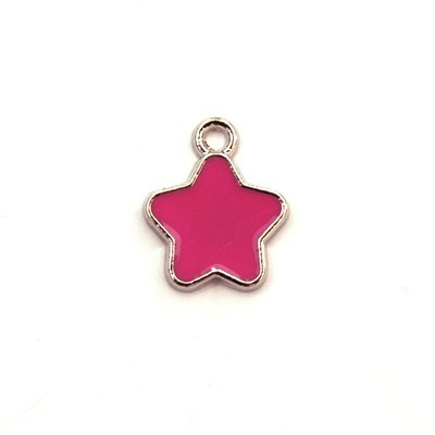 Breloque émaillée étoile couleur fuchsia 13mm x 15mm.