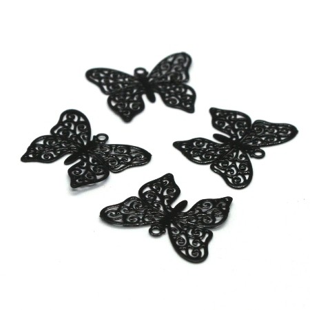 4 Estampes filigrane papillon en métal laqué couleur noir, dimensions 13mm x 16mm.