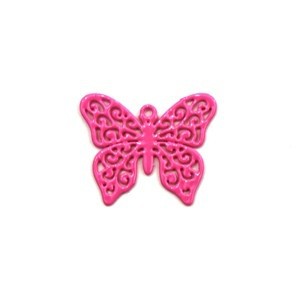 4 Estampes filigrane papillon en métal laqué couleur rose, dimensions 13mm x 16mm.