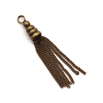 Pompon chaînette en métal couleur bronze, largeur 7mm, longueur environ 5cm.