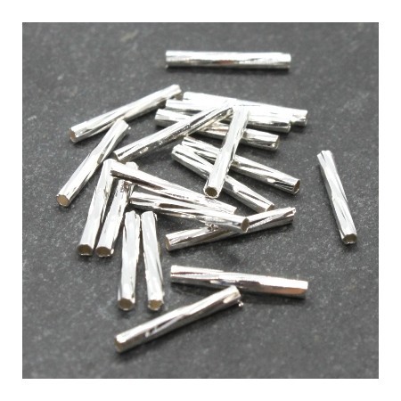 Lot de 20 perles tube striées en métal couleur argentéPerles intercalaires longueur 13mm, diamètre 1,5mm.