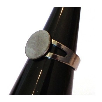 Bague plateau 12mm couleur noir gunmetal. Support bague avec plateau rond et anneau évasé, divisé et ajouré en haut. Ajustable sous le doigt.