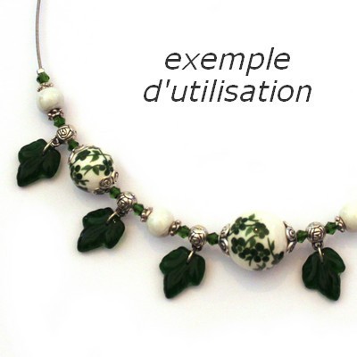 Perles feuille de vigne en verre moulé, dimensions 13mm x 16mm.