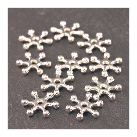 10 Perles rondelles flocon de neige métal argenté 12mm