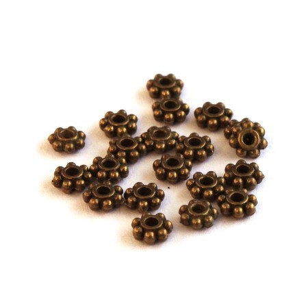 20 Perles mini rondelles à picots métal bronze 4,5mm