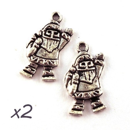 Lot de 2 breloques en forme de Père Noël en métal couleur argent vieilli, hauteur 23mm.