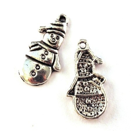 Lot de 2 breloques en forme de bonhomme de neige en métal couleur argent vieilli, hauteur 25mm.