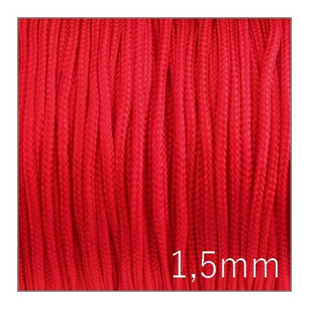 Cordon nylon tressé diamètre 1,5mm couleur rouge.