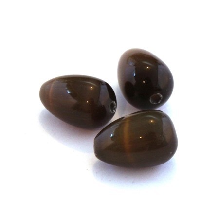 Perle goutte oeil de chat taille 14mm x 10mm couleur marron.