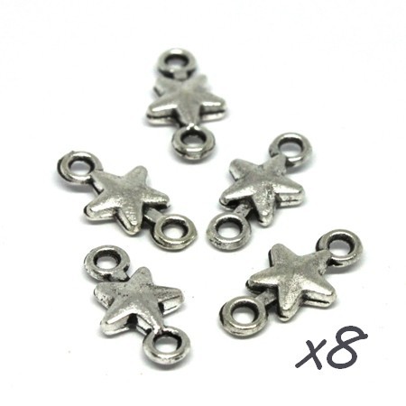 Lot de 8 breloques connecteur étoile en métal couleur argent vieilli. Breloque étoile avec 2 anneaux, hauteur 15mm.