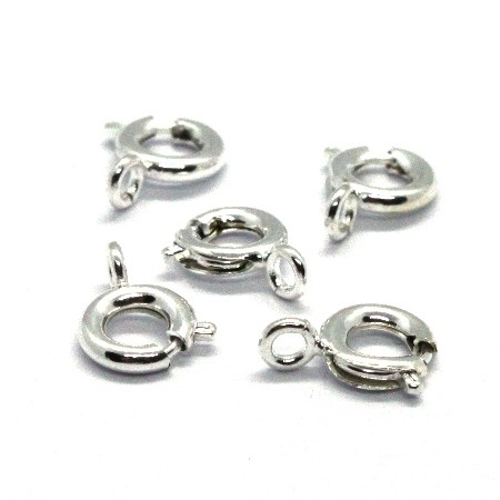 Lot de 5 fermoirs à ressort en métal couleur argenté, dimensions 6mm x 9mm.