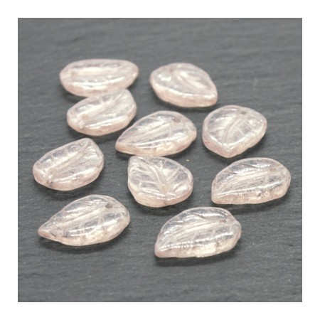 Lot de 10 perles feuilles dimensions 10mm x 14mm en verre couleur champagne clair avec une finition lustré.