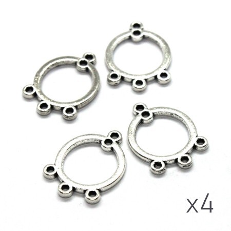 Lot de 4 breloques connecteur simples en métal couleur argent vieilli. Breloque chandelier avec 3 anneaux en bas et 1 double anneaux en haut, dimensions 14mm x19mm.