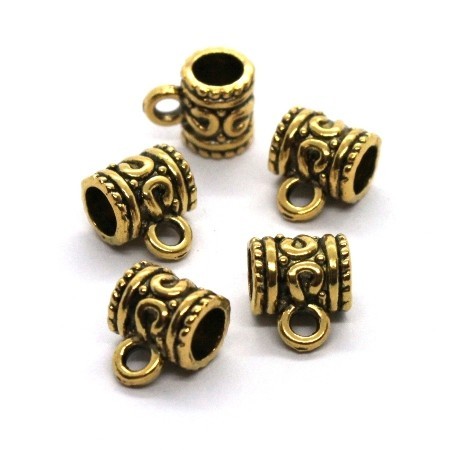 5 perles attache breloques en forme de tube en métal couleur doré.