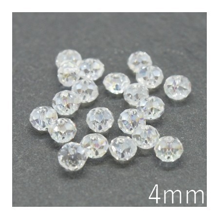 Lot de 20 perles rondelle à facettes diamètre 4mm couleur cristal irisé AB. Perles abacus facettées en verre cristal avec une finition irisée.