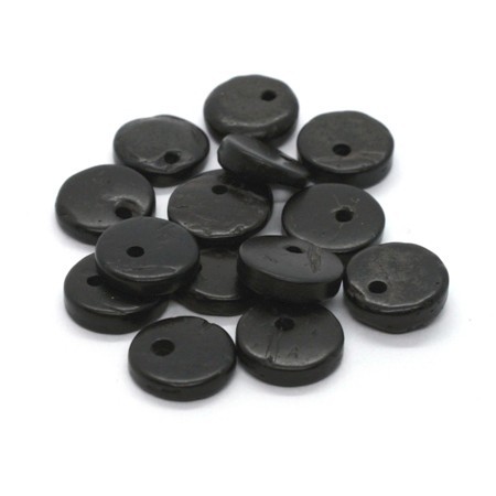 Lot de 20 perles sequins ronds en noix de coco couleur noir, diamètre 12mm.