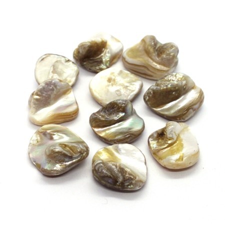 Lot de perles gros chips en coquillage couleur naturel - minimum 10 pièces. Perles chips irrégulières en nacre de coquillage teintée.