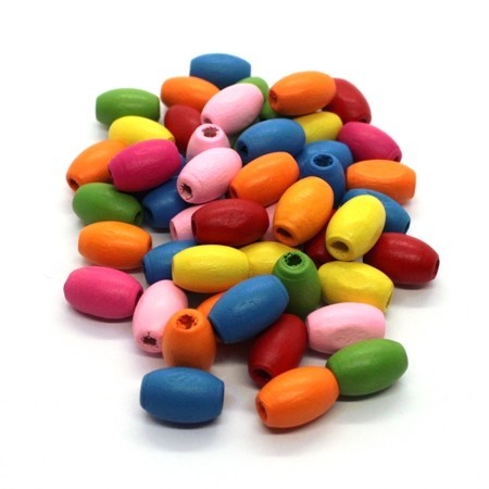 50 Perles ovales en bois 12mm assortiment