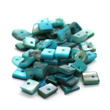 Lot de 10g de perles chips de nacre carrées couleur turquoise.