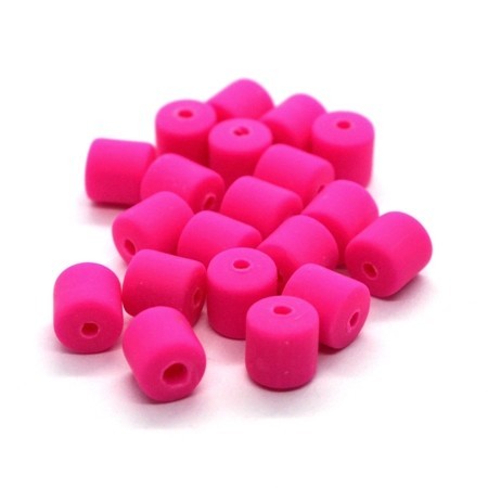 Lot de 20 perles tonneau en fimo couleur rose vif. Perles tubes en pâte polymère de couleur unie, dimensions 6mm x 6mm.