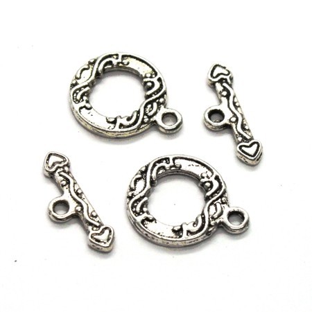 Lot de 2 ensembles fermoir toggle en métal couleur argent vieilli. Anneau et barre ornés avec motif vagues.