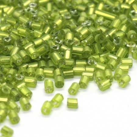 Mini rocailles tube 2mm vert clair Silver Lined 10g