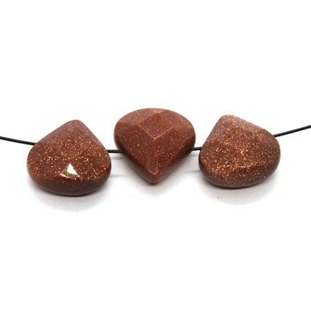 Lot de 3 perles gouttes à facettes en goldstone pierre de soleil, dimensions 13mm x 13mm.