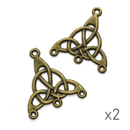 Lot de 2 breloques chandelier noeud celtique en métal couleur bronze. Breloque connecteur avec 3 anneaux, hauteur 28mm.