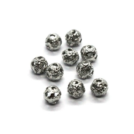 20 Petites perles filigranées rondes en métal, diamètre 4mm, couleur vieil argent.