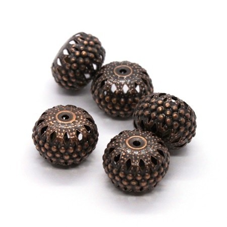 Perles creuses et légères en métal fin filigrané effet dentelle.
