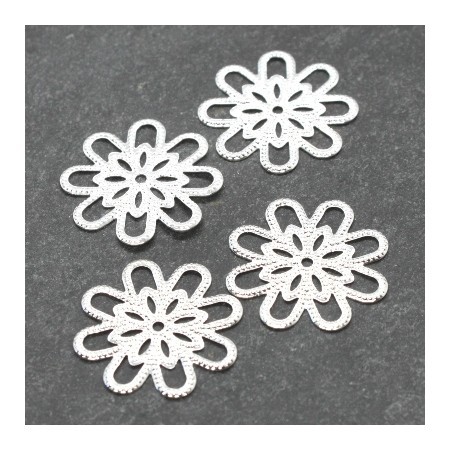 10 Estampes filigrane fleur argentées 18mm