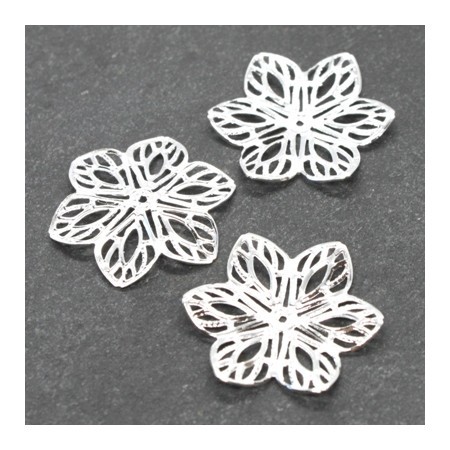 5 Estampes filigrane fleur bombée 22mm argentées
