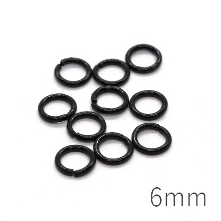 Lot de 10 anneau brisés épais en métal laqué couleur noir (jet), diamètre 6mm