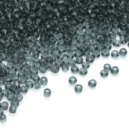 Sachet de 15g de perles de rocailles couleur gris transparent.