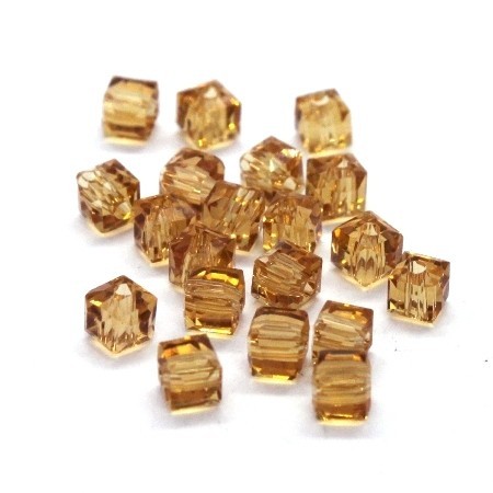 Lot de 20 perles cubes à facettes dimensions 4mm x 4mm en verre cristal couleur topaze.