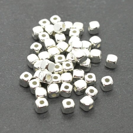 Lot de 50 perles cubes synthétiques métallisées. Petites perles cubes CCB effet métal 4mm x 4mm avec coins arrondis couleur argenté.