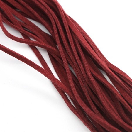 Cordon suédine aspect daim, largeur 2,5mm couleur rouge marron. Lacet en suédine plat et fin pour colliers et bijoux.