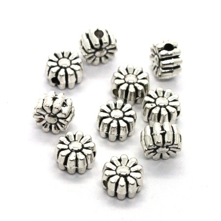 Lot de 10 perles intercalaires fleur margueritediamètre 6,5mm, en métal couleur argent vieilli.