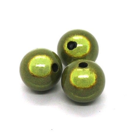 Perles magiques rondes diamètre 12mm, couleur vert olive.