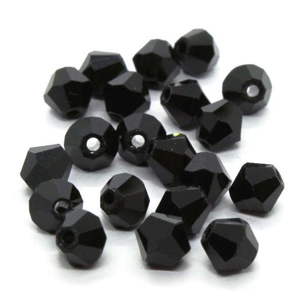 Lot de 20 perles toupies en verre 6mm couleur noir. Perles toupies de forme bicône en verre cristal d'Autriche de qualité 'A'.