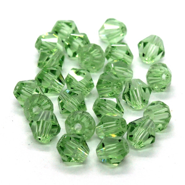 Lot de 20 perles toupies en verre 6mm couleur vert péridot. Perles toupies de forme bicône en verre cristal d'Autriche de qualité 'A'.